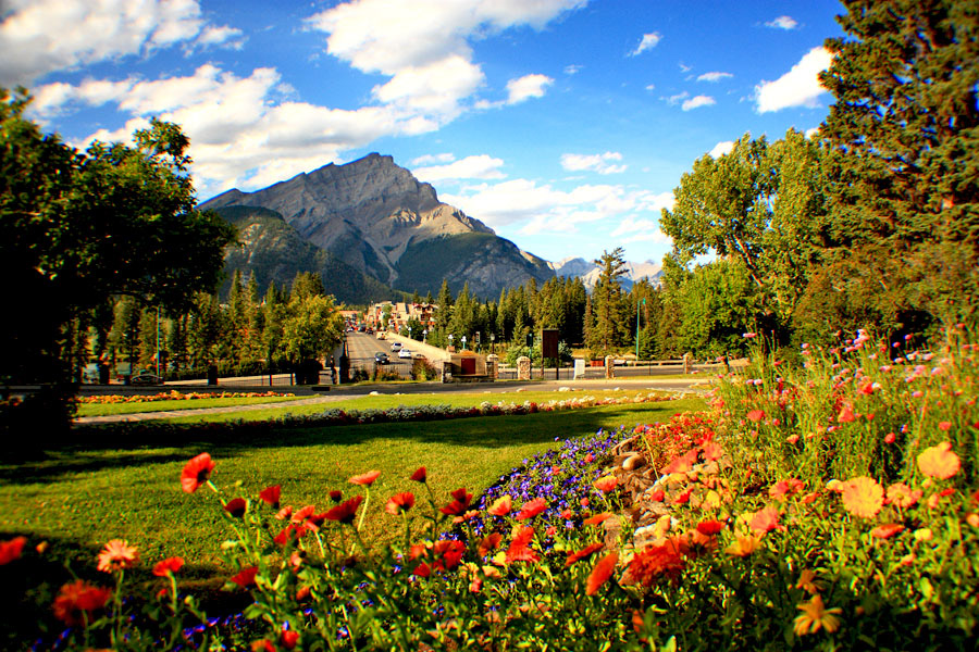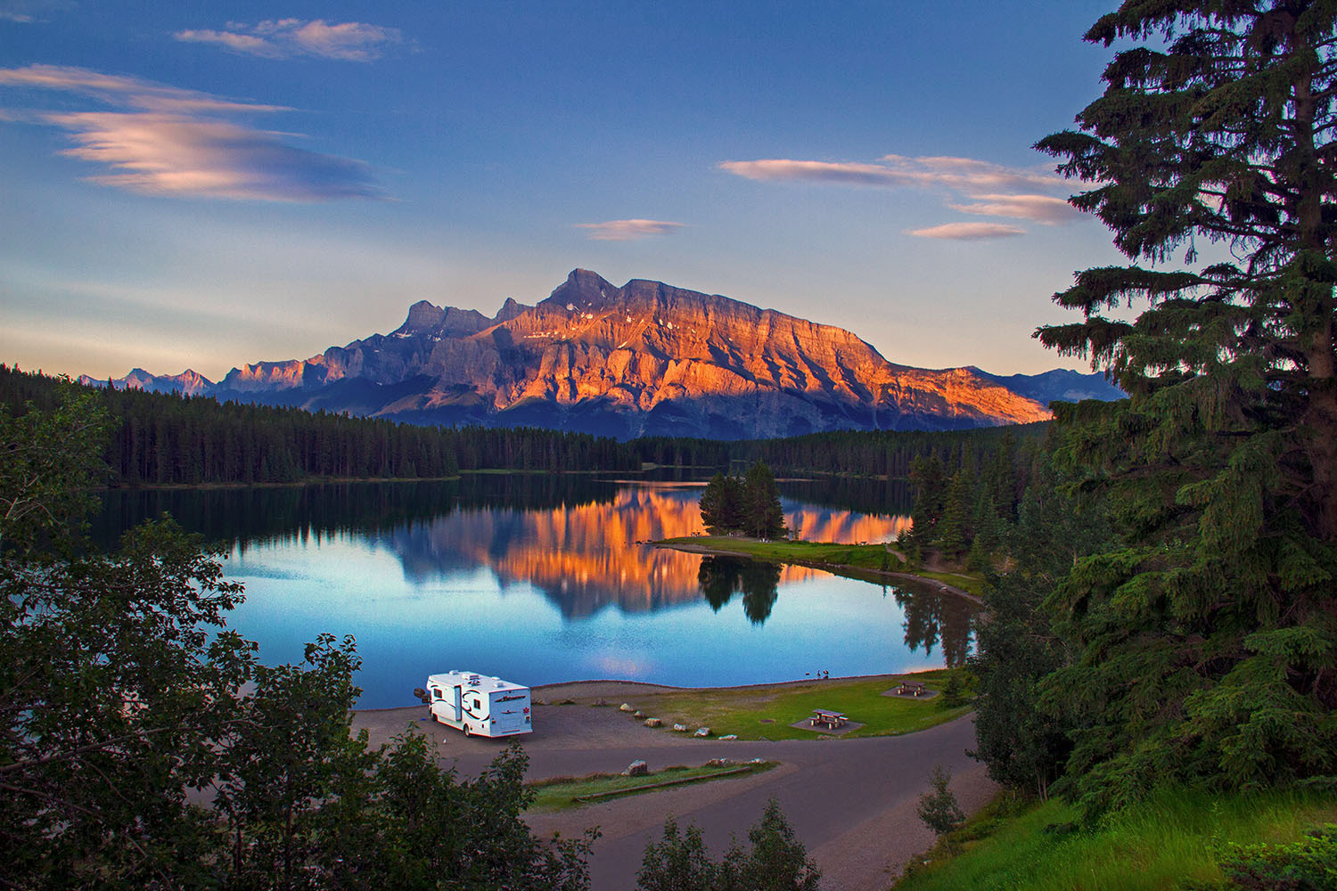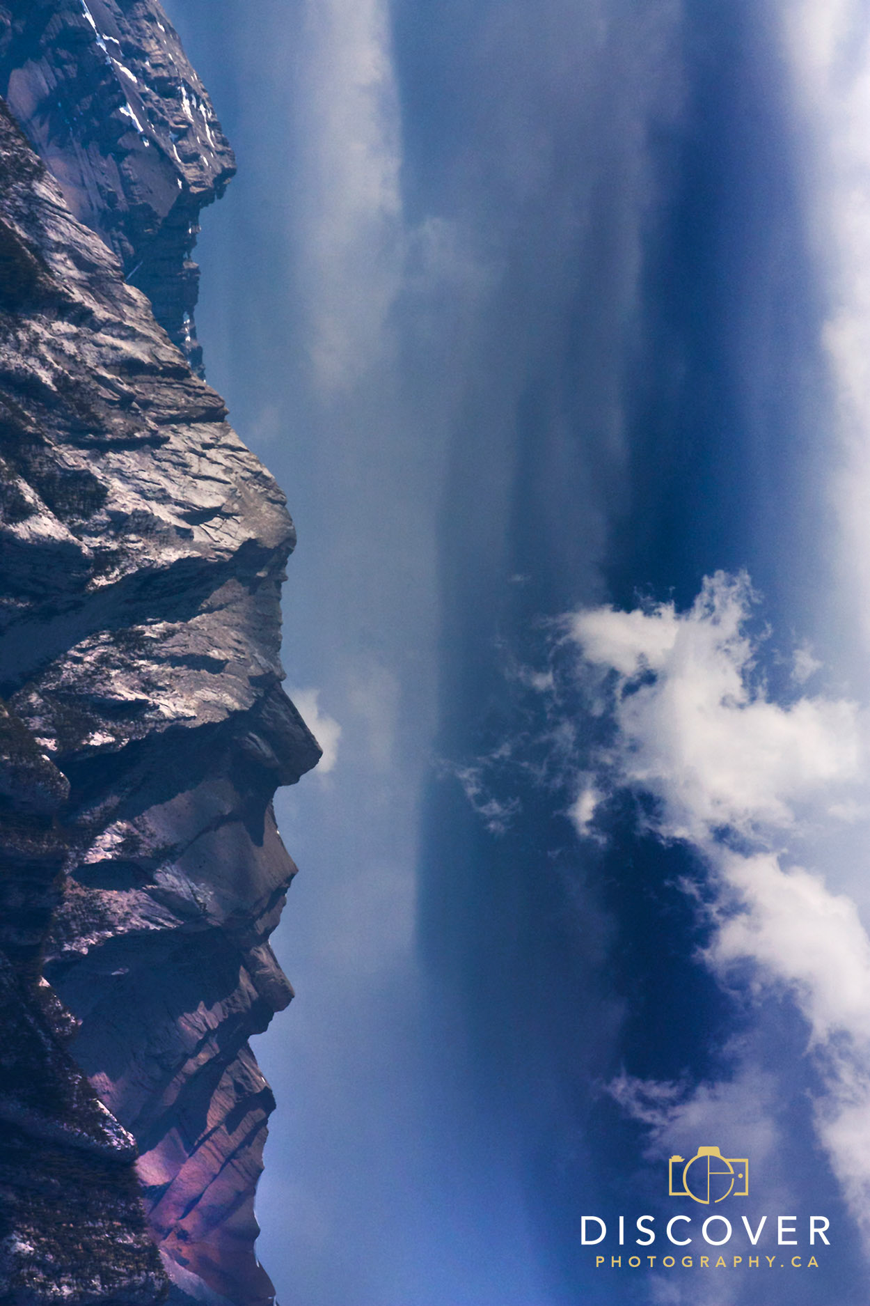 Faces in the rocks - Canmore's Mount Lady MacDonald - notice what appears to be a blind-folded woman's face AND below her chin, is a man's face with his left hand's 2 fingers rubbing his chin - the particular angle of the sun revealed these startling secrets - tilt your head sideways to see the actual mountain peaks.